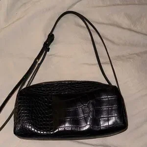 This ZARA stylish black shoulder bag features a sophisticated crocodile-embossed design. Perfect for any occasion, it adds a touch of elegance to your outfit.