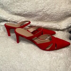 Cole Haan Red Vandam Dress Mules Pointed Toe Pumps Sz 8B Heeled Sandals