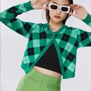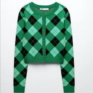 Gorgeous Zara Green Argyle Knit Cardigan Bloggers Favorite Size Medium