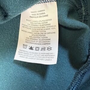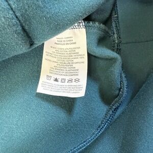 The Air Jordan pullover hoodie in size medium, Tiel Dark Green Heavy Weight, is a stylish and comfortable garment featuring a classic solid pattern with a drawstring closure. The hoodie is made from a blend of polyester and cotton with a microfiber fabric type, making it suitable for machine wash. It showcases the iconic Michael Jordan character with a lettered logo accent, representing the basketball classic sports theme. The hoodie is perfect for gym training, basketball, and running activities, making it a versatile and must-have addition to any sports enthusiast's wardrobe. This hoodie appears to be much bigger in person and based on the measurements included in photos. No problem being a large as well. Heavy hoodie will keep you very warm. Has a few minor pull marks where we pointed it out with the scissors on the photos. All around very nice condition