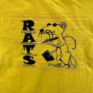 A unique graphic tee featuring the acronym RATS (Resources, Assessment, Techniques, Skills) alongside an illustration of a rat holding a briefcase and wearing sunglasses. The design incorporates various quotes and phrases in the background, adding to its distinctive and intellectual appeal. This short-sleeved shirt has a classic crew neck and a comfortable fit, making it a standout piece for casual wear.