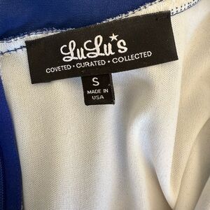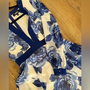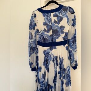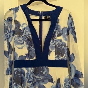 Women’s beautiful chic long sleeve Lulu’s dress with navy floral pattern. Perfect for elegant occasions.