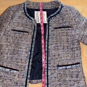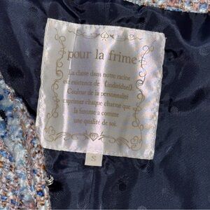 Pour la Frime Tweed Blue Knitted Jacket Women Small Hookeye close Pockets Church Wedding Guest Office Work Wear