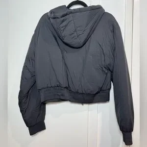 The Underground jacket, crafted from lightweight nylon and filled with recycled down, provides warmth and comfort. Its relaxed fit allows for ease of layering and is suitable for various temperatures. The embroidered initial R and silicon-dipped cord ends add subtle, branded details, enhancing its casual versatility.