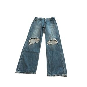 Levis Women's 27 Low Pro Straight Jeans Blue Mid Rise Distressed Denim