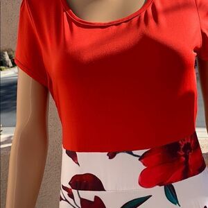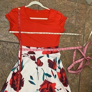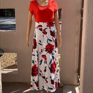 Women’s Large Scoop Neck Short Sleeve Spring Maxi Dress White Red Green Floral