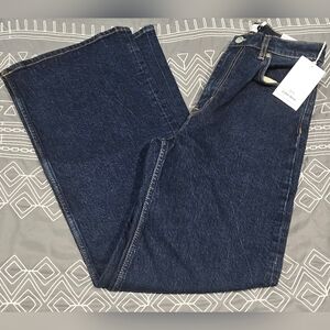 Brand new with tags. Size 27. High waisted. Wide leg style. Extra long length. Dark wash denim. Non distressed. 5 pockets. Heavier denim. Measurements and fabric content listed above in pictures.