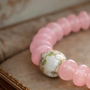 NWOT Natural Stone Rose Quartz Elephant Charm Beaded Bracelet