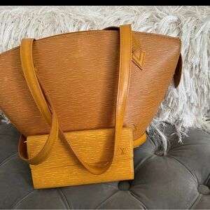 Chic Louis Vuitton tote with textured design. Features tan and brown hues. Ideal for versatile styling. Does have a few scratches on bag the wallet is in excellent condition. No odor.