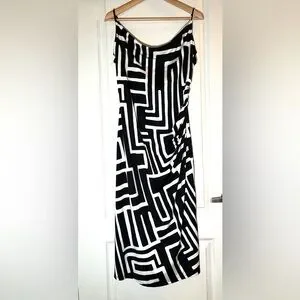 NWOT Jules & Leopold B&W Geo Print Cowl Neck Slip Midi Dress Date Night Party, M