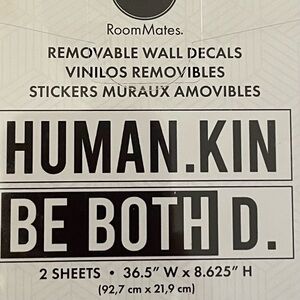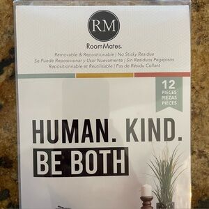 Inspirational wall decals with 'Human. Kind. Be Both' message.