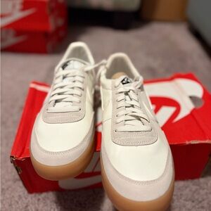 Classic Nike sneakers with a white upper and gum sole. Perfect for casual wear.