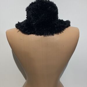 • Plush black faux fur material.