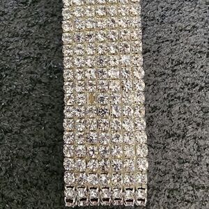 This stunning silvertone rhinestone stretch bracelet adds a touch of elegance to any outfit. Perfect for special occasions or everyday wear. Missing one rhinestone as shown in the 3rd photo. Hard to find when looking for it!