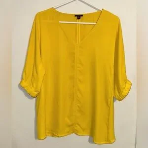 Elevate your style with this golden V-neck blouse. Ideal for casual and chic looks.