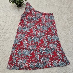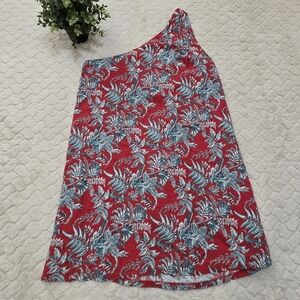 LOFT Red and Blue Floral One-Shoulder Short Shift Dress, Size Medium