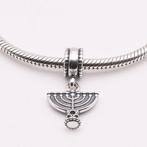 Authentic PANDORA Retired Sterling Silver Menorah Religious Jewish Dangle Bead, S 925 ALE stamp
