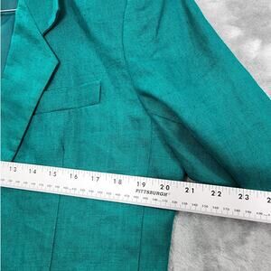 Vintage Liz Claiborne Skirt Suit Womens 10/12 Green Linen Blazer Pencil Office