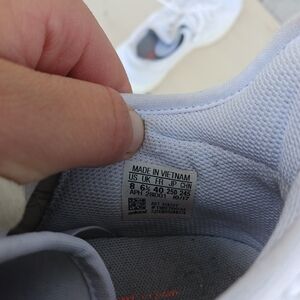 It's a Knit White Lace Up style of sneakers. It does have light signs of wear. Some light discoloration, it's a Womens Size 8