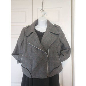 Discription: Very adorable waist length jacket with plaid in balck, gray, and a slight hint of red.