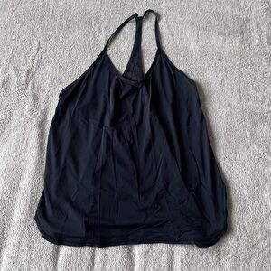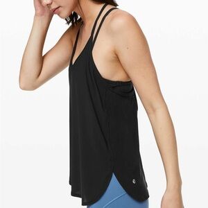 Gorgeous and feminine Lululemon Delicate Day Tank in classic black, featuring a lace back panel for added style and breathability. Designed for low-impact activities like yoga, barre, or Pilates, this tank combines function with fashion.