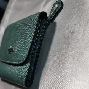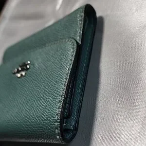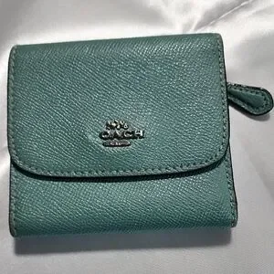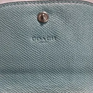 Chic Coach wallet in turquoise leather. Stylish and practical for daily use.