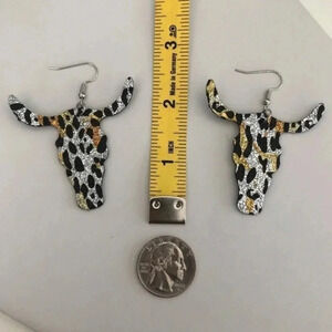 3 for $25/ Longhorn Leopard Print Metallic Faux Leather Die-Cut Earrings NWT