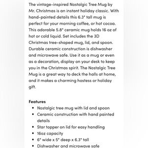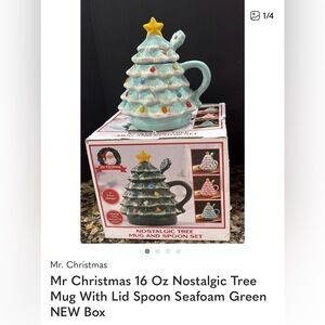 Mr. Christmas 16oz Lidded Nostalgic Christmas Tree Mug with Spoon NIB