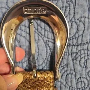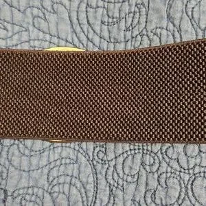 Stylish belt with textured accents and a brown stretch strap. Perfect for adding a touch of elegance to any outfit.