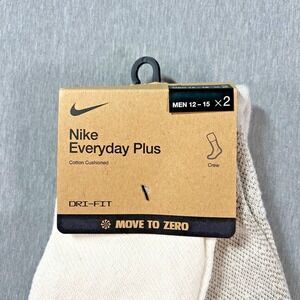 New 2pack Men's Nike Everyday Plus Undyed Cushioned Crew Socks 12-15 White/Wheat