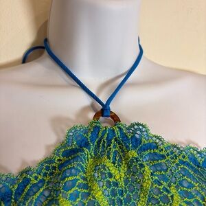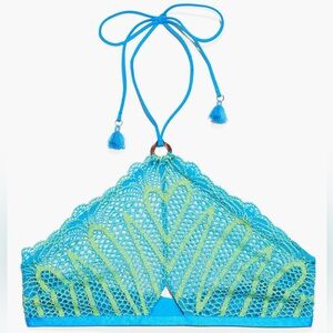 Savage X Fenty STRANDED IN LACE CROCHET HALTER BRALETTE Surf Blue Size XL