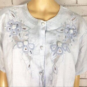 Buttercup Women’s Hand Embroidered Linen Top - Size XL