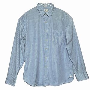 Classic J Crew Men’s Shirt Long Sleeve Button Up Front Shirttail Hem Casual Dressy Cotton Pinstripe Multicolor Blue XL