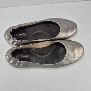 L.L. Bean Leather Slip On Ballet Loafer Flats Women's 8 Metallic Silver.........