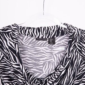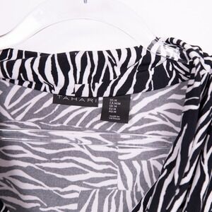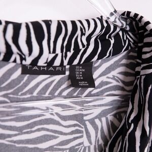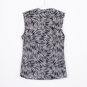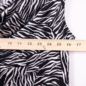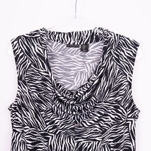Keywords: Tahari, zebra print, sleeveless blouse, cowl neck, black and white, womens top, size M, casual top, animal print top, blouse, sleeveless top, career wear, modern blouse