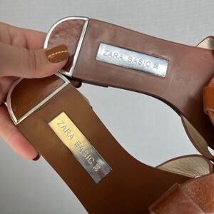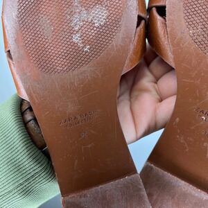 Keywords: ZARA BASIC sandals, brown leather sandals, braided sandals, flat slide sandals, women's sandals, EU 38 sandals, US 7.5 sandals, slip on sandals, summer sandals, casual sandals, designer sandals, chic sandals, comfortable sandals