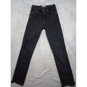 AGOLDE Sophie Crop High Rise Black Denim Raw Hem Skinny Leg Jeans Size 24