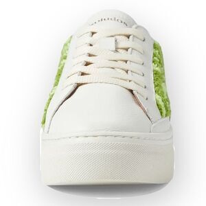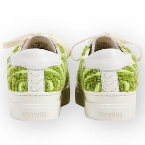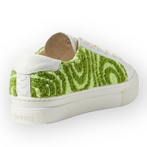 Psychedelic, retro, hippie, bohemian, 60s, 70s, Alice in wonderland, mad hatter, Willie Wonka, green, green swirl, platform sneaker, leather, funky, geometric, swirls textured