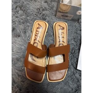Brown leather Slide Sandals Women size 11 with Memory Foam Slippers NEW NWT