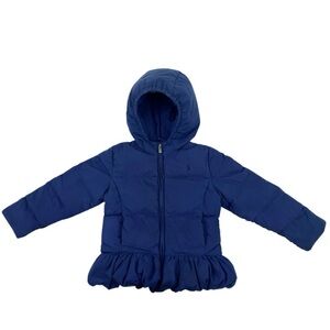Crafted with thick down fill, a filled hood and an adorable peplum hem, this jacket combines unbeatable warmth and a sweet look.