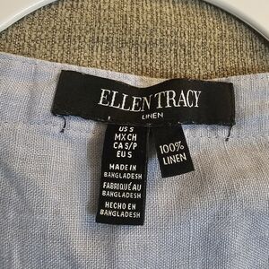 Ellen Tracy Linen Light Blue Casual Career Office Tunic w/ Gold Accents Small