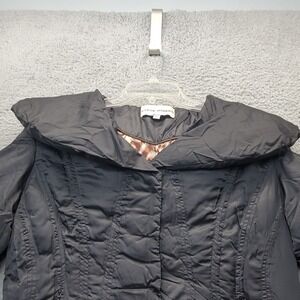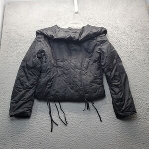 Steve Madden Puffer Jacket Womens Large Black Leopard Print Lined Cropped Ruched.