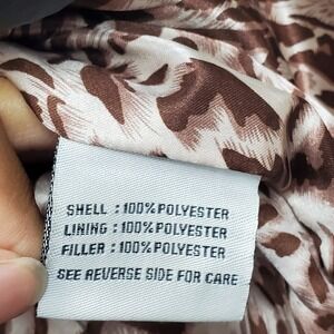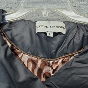 Steve Madden Puffer Jacket Womens Large Black Leopard Print Lined Cropped Ruched