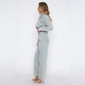 White Fox Boutique Did You Miss Me Mid Rise Straight Leg Jeans Light Blue wash