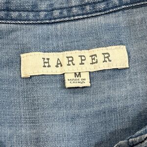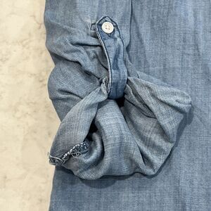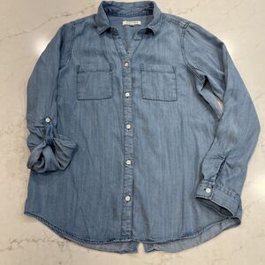 Harper Womens M Button Up Back Light Chambray Roll Tab Long Sleeve Lyocell Shirt