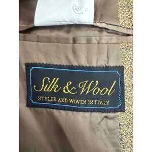 Alan Flusser Brown Windowpane Suit Jacket Blazer Silk Wool Blend Mens 44L