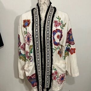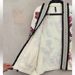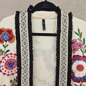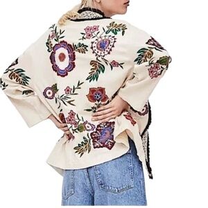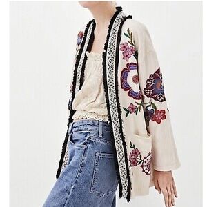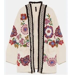 🔥 ZARA Stunning Floral Boho Embroidered Kimono Jacket Cotton Size S-M Blogger 💜