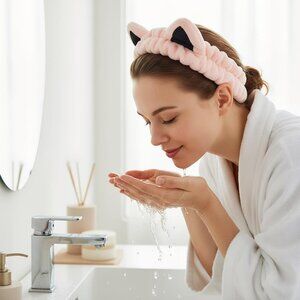 Face wash headband is made of soft coral fleece material, super cute, soft, absorbent. It help hold hair back so you can effectively wash forehead and not get hair wet
