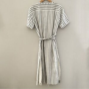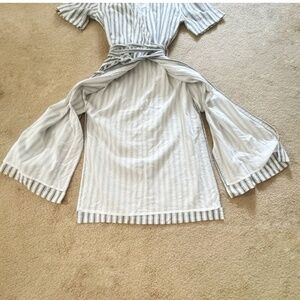 Style Tags: Tularosa Maddy dress size medium tularosa revolve wrap dress navy stripe midi length size medium Maddy dress
