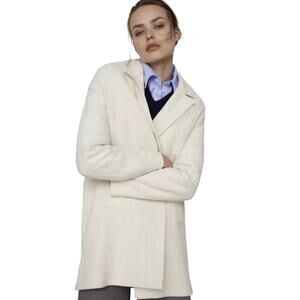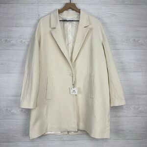 Zara Oversized Textured Wool Blend Coat Women XL Ivory Long Jacket Blazer